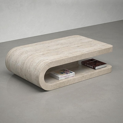 ハイエンドベージュトラバーチンコーヒーテーブル天然石芸術的クリエイティブ家具モダンリビングルーム高級特別な形のテーブル