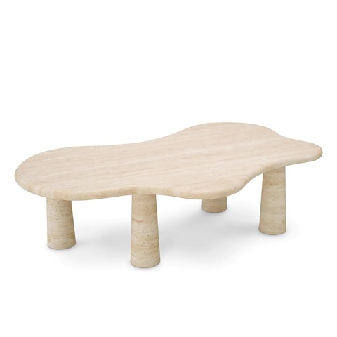 エレガントなベージュのトラバーチン大理石の不規則なコーヒーテーブル高級モダンデザイナーリビングルーム石造り家具芸術的な室内装飾
