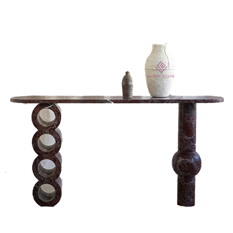 โต๊ะคอนโซลหินอ่อนสไตล์อิตาลี Rosso levanto ตกแต่งโถงทางเดินกับผนังโต๊ะแนวศิลปะสร้างสรรค์ระเบียงดีไซน์คลาสสิก